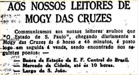 a Mogi das Cruzes (Folha da Manhã, 11/9/1955).