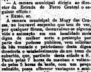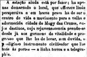 AO LADO: Mogi beneficiar-se-á com a ferrovia (A Provincia de S. Paulo, 6/11/1875). |