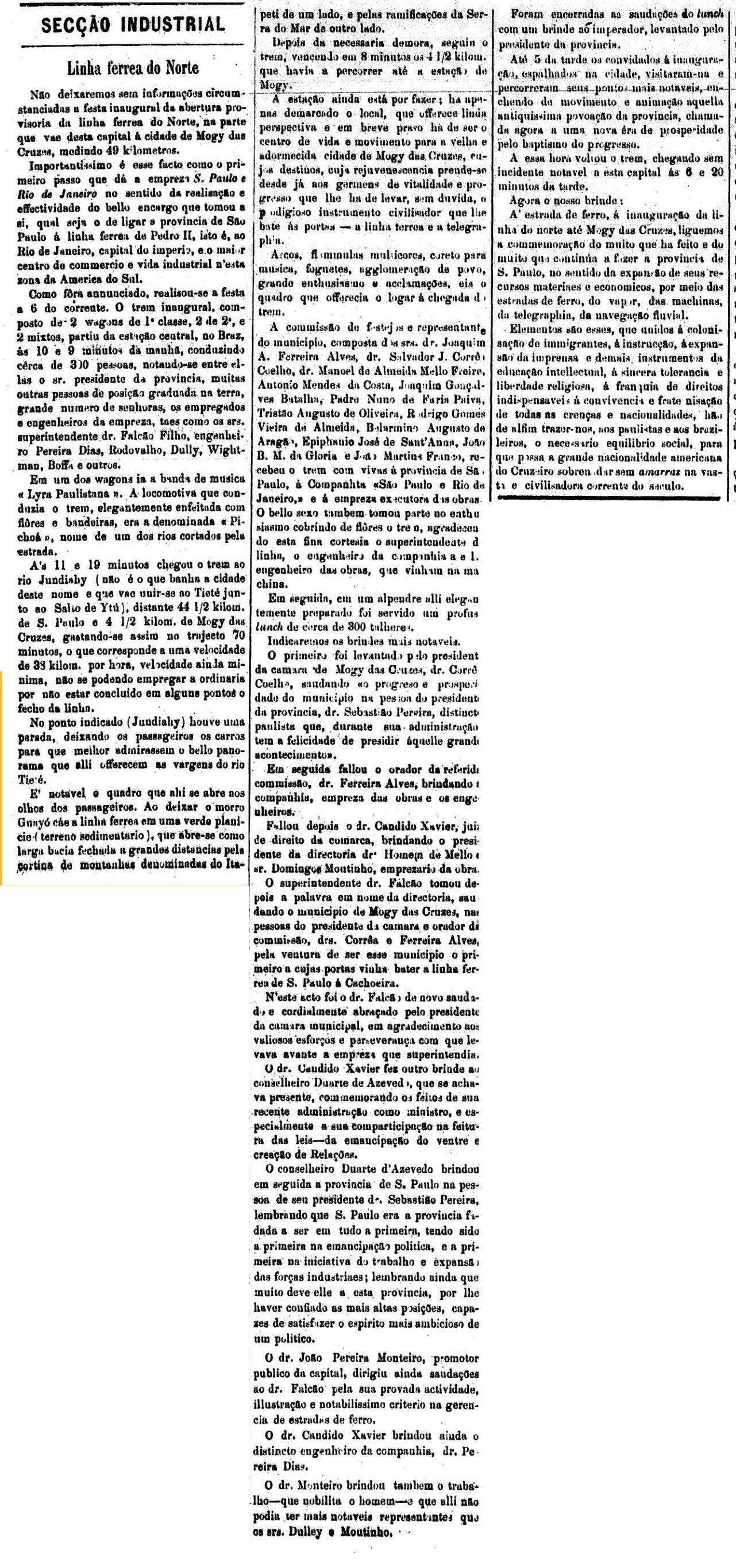 ACIMA: Abertura da linha do Norte até Mogy. Reparar que não são citadas estações intermediarias (A Provincia de S. Paulo, 6/11/1875).