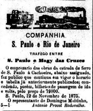 AO LADO: Preços do bilhete para ir de SP a Mogy (A Provincia de S. Paulo, 13/11/1875). |