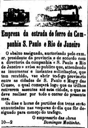 AO LADO: Autorizado tráfego provisório até Mogi das Cruzes(A Provincia de S. Paulo, 15/10/1875). |
