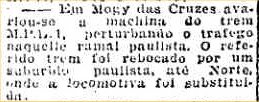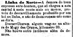 AO LADO: Boi causa descarrilamento rm Mogi (A Provincia de S. Paulo, 9/10/1877). |