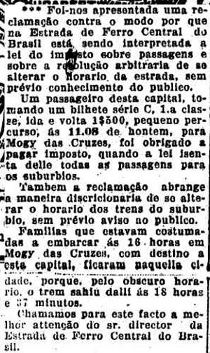 para Mogy das Cruzes continua sendo afetado pelos impostos - CLIQUE SOBRE A FIGURA PARA VER O ARTIGO INTEIRO - (O Estado de São Paulo, 3/1/1917). |