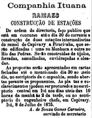 das mais antigas do ramal, foi inaugurada em fins de 1876 pela Ytuana,