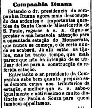 AO LADO: As obras da estação nem haviam começado ainda e o povo reclama (A Provincia de S. Paulo,