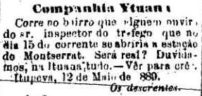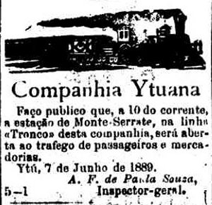 1889. Um horário de trens da Ytuana publicado em 3 de abril