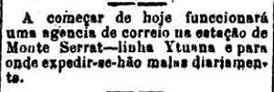 AO LADO:Aberta a agencia de correio na estação em 16 de outubro (A Provincia de S. Paulo,