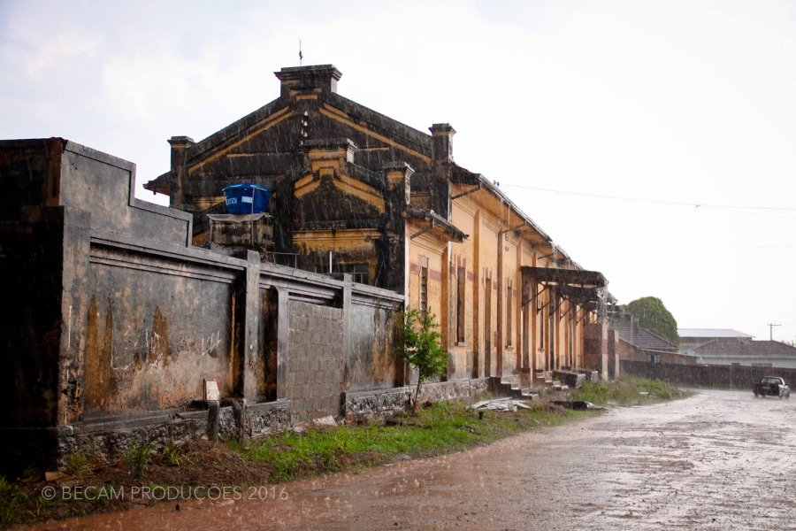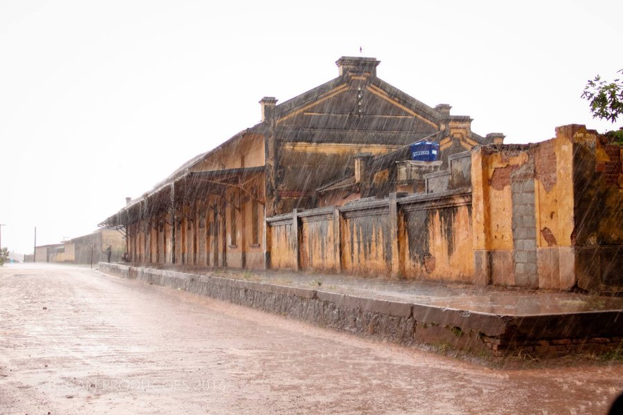 ACIMA: Em 2016, num dia de muita chuva, parte da fachada da estação de Monte Santo de Minas (Foto Adriano Martins).