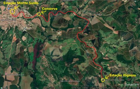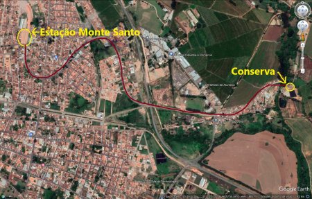 CASAS DE CONSERVA DA LINHA NO RAMAL: É Juliano Zambrota quem conta, em mensagem de 2022: "As casas de conserva da linha, onde moravam funcionários da Mogiana ficavam próximas, cerca de 1 km da estação em 2019. Estive na cidade de Monte Santo nesse ano e deparei-me com antigas construções, com um prédios de alvenaria com uma caixa d'água da CM e, conversando com algumas pessoas do local, disseram-me que o local era chamando de "CONSERVA" que teria sido uma estação ou parada eventual para reabastecimento de água nas locomotivas a vapor (ver caixa abaixo, de 2019). Havia também clgumas casas junto ao pátio, como mostrado em mapas e fotos abaixo).