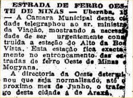 Ainda segundo o Arquivo Público de Uberaba, a estação