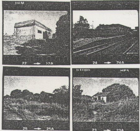 ACIMA: A estação, acima à esquerda e outras construções cerca dela, em 1986 (FEPASA: relatório