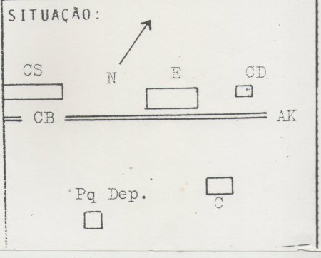 ACIMA: Esquema dos prédios no pátio em 1986 (FEPASA: relatório