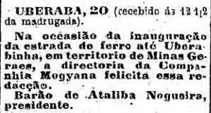 AO LADO: Nota sobre a inauguração da estação da futura Uberlândia com mais de um ano de atraso da nota anterior do ano de 1894 (O Estado de