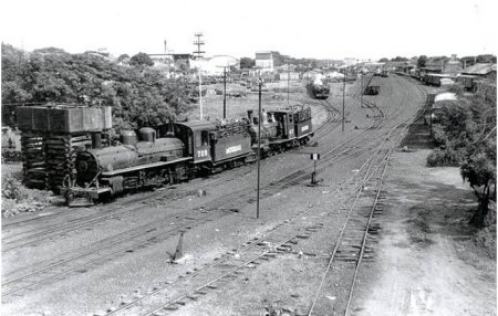 ACIMA: Pátio da estação de Uberlândia nos anos 1950 (Autor desconhecido).