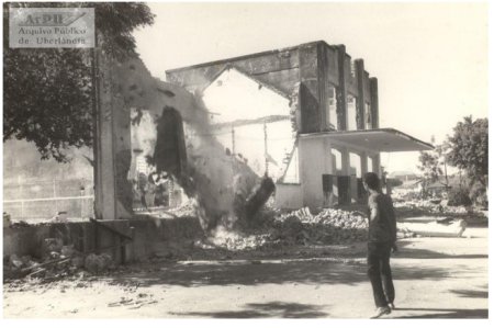 ACIMA: Demolição da segunda estação de Uberlândia em 1970 (Autor desconhecido).