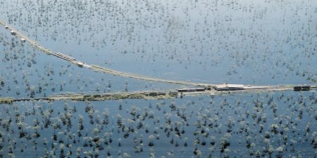 d'água durante as cheias. A NOB teve que esperar o levantamento da