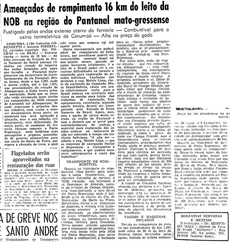 em Porto Esperança; somente em 1952 a cidade de Corumbá