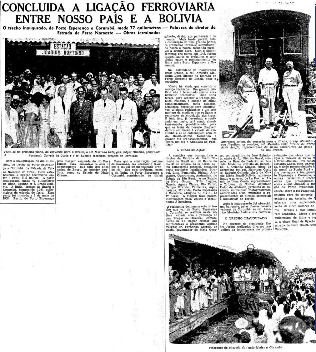 de Corumbá foi inaugurada em dezembro de 1952. Ela teve a pedra fundamental lançada por Getulio Vargas em agosto de 1941 e havia sido projetada pelo engenheiro Alfredo Ernesto Brandão (OESP, 28/8/1941).