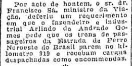 AO LADO: Novamente a Noroeste é autorizada a usar o posto 919. Isto aconteceu um mês depois da data considerada como a de inauguração (O Estado