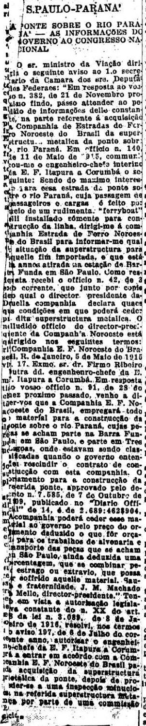 Noroeste do Brasil, que fazia o trecho inicial no Estado de São
