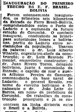 a cidade de Corumbá seria alcançada pelos trilhos. Logo