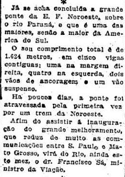 Noroeste do Brasil, que fazia o trecho inicial no Estado de São