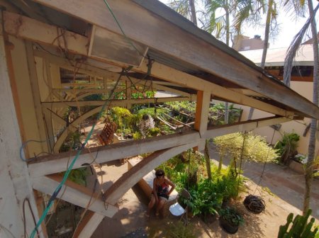 bastante deteriorado, sem condições de abrigar qualquer coisa, muito