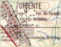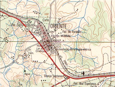 ACIMA: A cidade de Oriente em 1943. À esquerda,