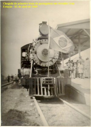 A primeira locomotiva chega a Osvaldo Cruz, em 01/04/1949. Foto