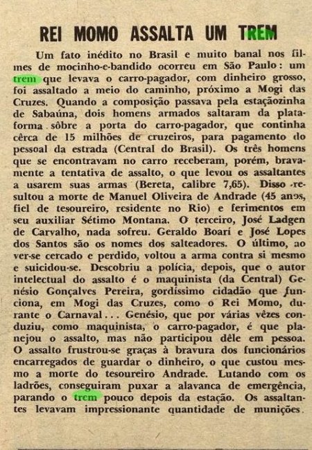 ACIMA: Sobre o assalto ao trem pagador e o Pagador Andrade em 1956 (Manchete, ed. 113). |