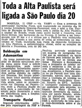 foi prolongada progressivamente até Panorama, na beira do rio Paraná,