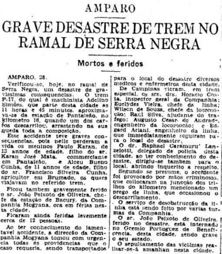 1935 - ACIMA: Desastre com mortes em Pantaleão (O Estado de S. Paulo, 29/9/1935).