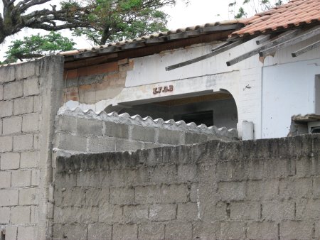 ABAIXO: A mesma casa, fotografada mais de perto, mostrando o logotipo