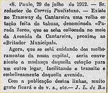1912, a Parada Zero era um barraco de madeira (Correio Paulistano,