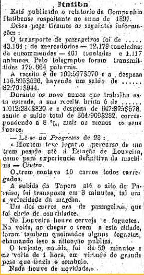 às estações Tapera Grande (Tapera) e Paraíso na reportagem transcrita do jornal Progresso de 26 de junho de 1898 pelo jornal O Estado de S. Paulo em 28/1/1898). |