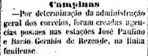 AO LADO: Criada agencia postal na estação de Paulinia da Funilenso (O