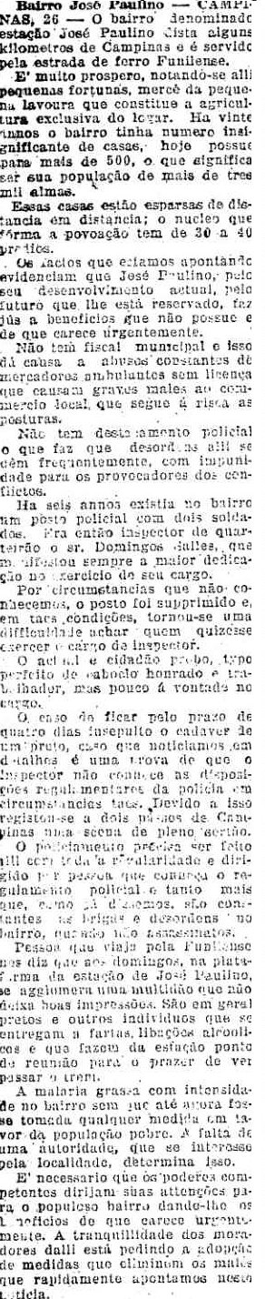 AO LADO: O bairro e a estação de José Paulino em 1917 - CLIQUE SOBRE O ARTIGO PARA VÊ-LO INTEIRO (O