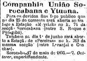 Consta nos relatórios da E. F. Sorocabana que a data seria a de 21.07.1887,