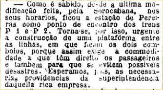 A ESTAÇÃO: Há uma situação confusa na data de inauguração de Pereiras, como se pode ver nos parágrafos abaixo, onde se misturam afirmações de historiadores locais e também os relatórios da Sorocabana.