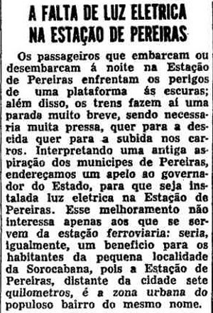 AO LADO: Notícias sobre Pereiras e sua estação (O Estado
