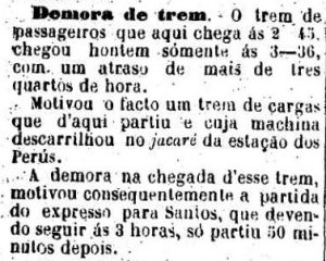 AO LADO: Descarrilamento em Perus (A Provincia de S. Paulo 11/4/1883). |