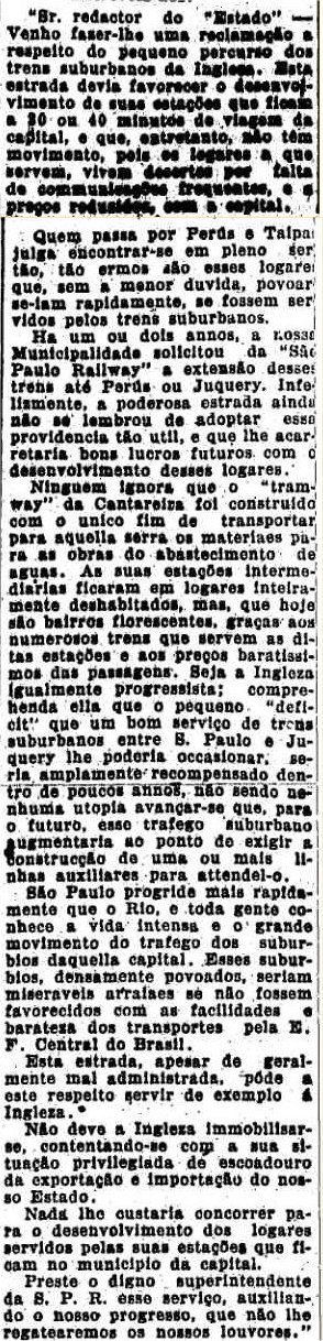 de São Paulo reclamavam por trens de suburbio. No caso,