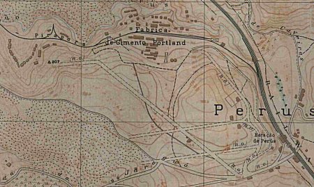 Mapa com a estação de Perus (canto direito) e a Fábrica