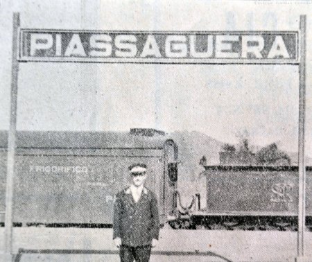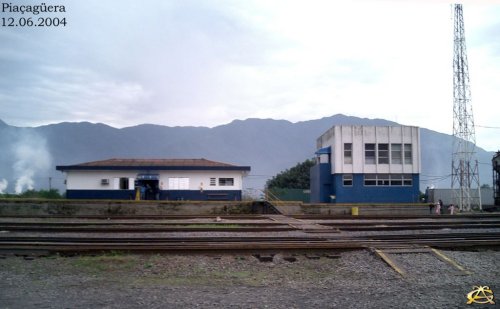 ACIMA: Na estação de Piassaguera, posa o chefe