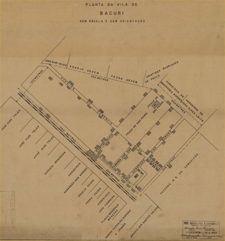 Caio Bourg). ABAIXO: Mapa da vila de Bacuri em 1950 (Arquivo Histórico