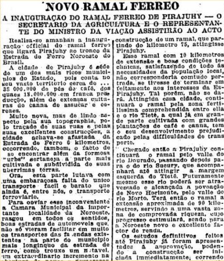 do ramal de Pirajuí (O Estado de S. Paulo, 14/11/1925).