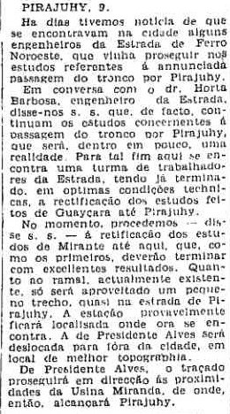À ESQUERDA: Projetando o novo percurso da ferrovia em Pirajuí (O Estado de S. Paulo, 12/1/1940). |