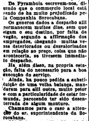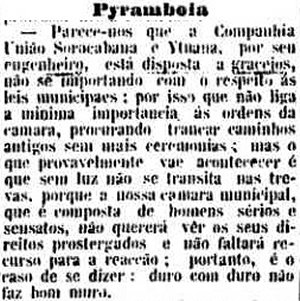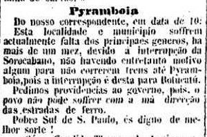 três km de Piramboia (A Provincia de S. Paulo, 24/12/1888). |