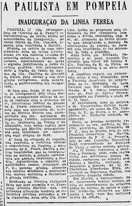 ACIMA: A inauguração da estação de Pompeia em 1935 - CLIQUE SOBRE O TEXO PARA VÊ-LO INTEIRO (Correio de S. Paulo, 21/2/1935).