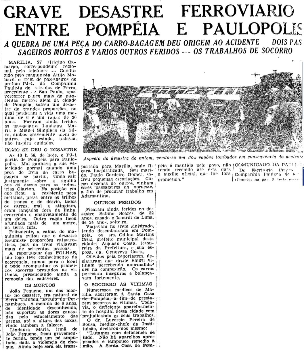 de Pompeia e de Paulopolis, houve um acidente de grandes